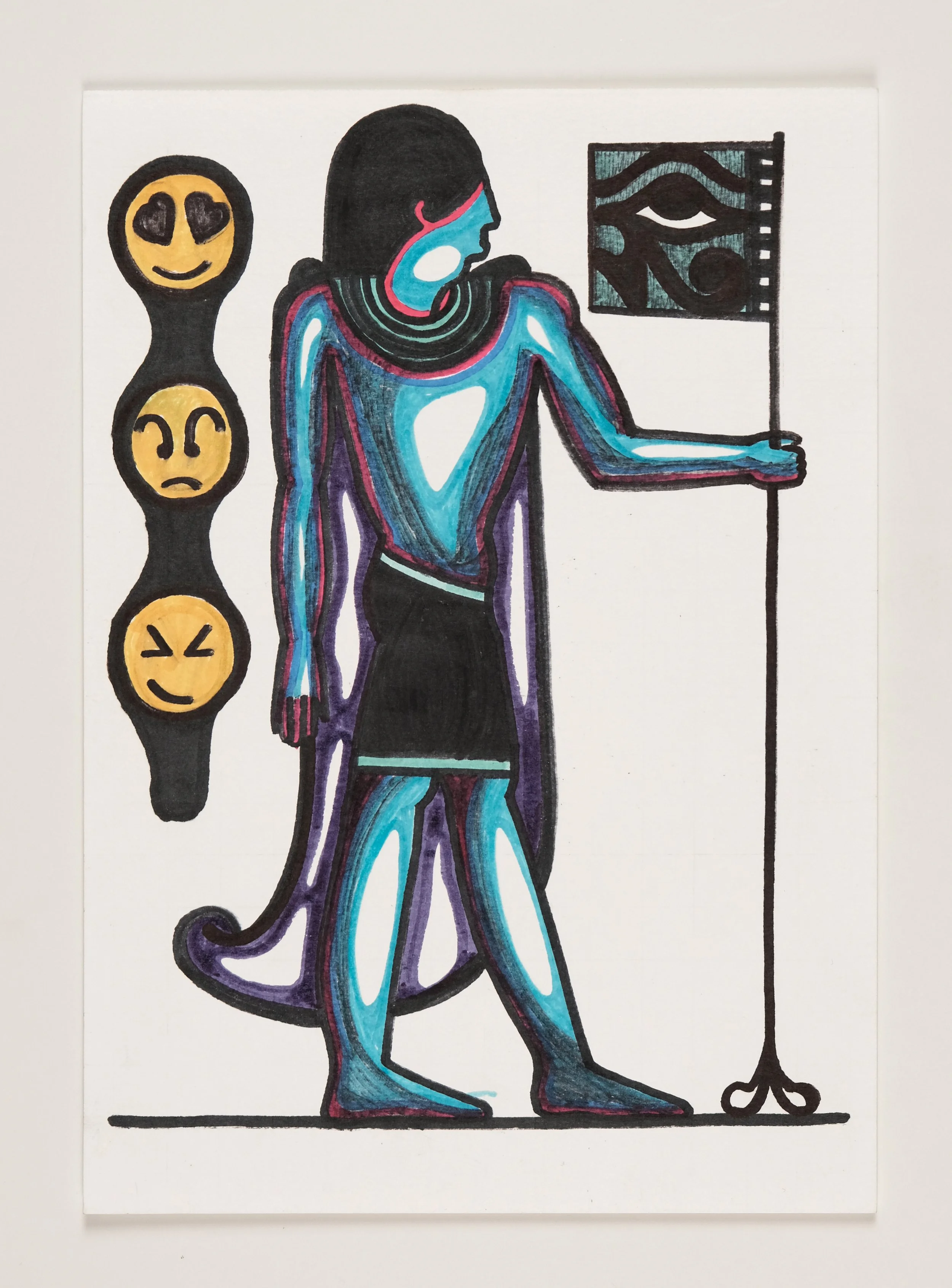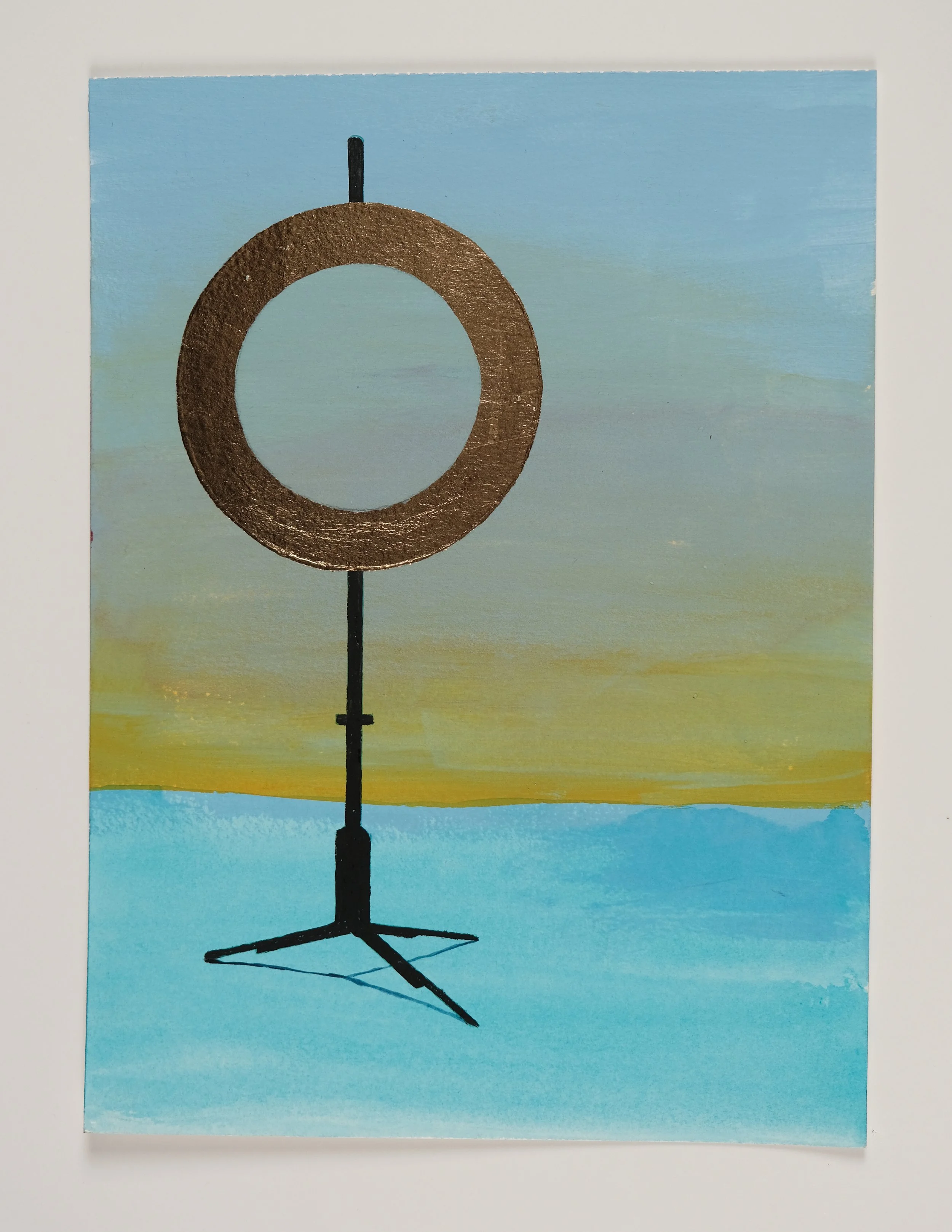 The Received, still empty, with a body close to the symbol of life from Ancient Egypt, or with a head resembling a ring of smoke, waits for the boat at the quay. We occupy the position of the boatman or one of the passengers on the boat—we can choose our place, for we are the masters of smoke. Untitled Limbo are the places of time at the quay. Leonardo Rito’s paintings allow us to choose our place and the empty space that will be occupied by an outline—the outline occupies the space that contours it. At the end of the road to the West, the space occupied by the outline is the space we occupy—we learn to perceive the outline in reverse. The negative space is now constricted by these bodies. We don’t want this, but the end of the road is full of discomfort, and every time we receive another body, arriving in the boat of millions, the mass occupied by the remaining space compresses us a little more. Leonardo Rito’s paintings propose possible meanings for the states of humanity. They escape the frame, liberating the observer from constraints. The paintings and the exhibition are organized complementarily, in two distinct spaces that mutually extrude from their pictorial support: paper and screen propose a framework, in which the non-existent frame in the painted papers is replaced by the freed (free?) space on the screen, allowing us to see these paintings wherever we are. This framework, generated by the circumstances of the present, reinforces a topos of painting very present in Rito’s work: religious perspective painting, a narrative, polycentric painting with countless vanishing points—negotiated in the duration of the observer’s gaze over the painted surface.